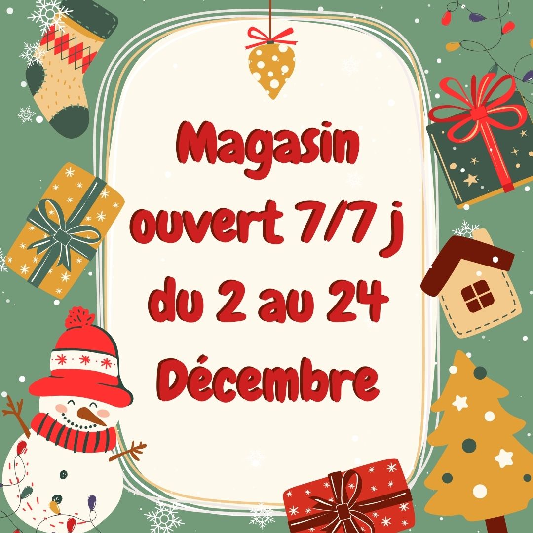 Afin de vous recevoir dans les meilleures conditions possibles à l'occasion des fêtes de fin d'année qui approchent, le magasin sera ouvert tous les jours durant le mois de Décembre !